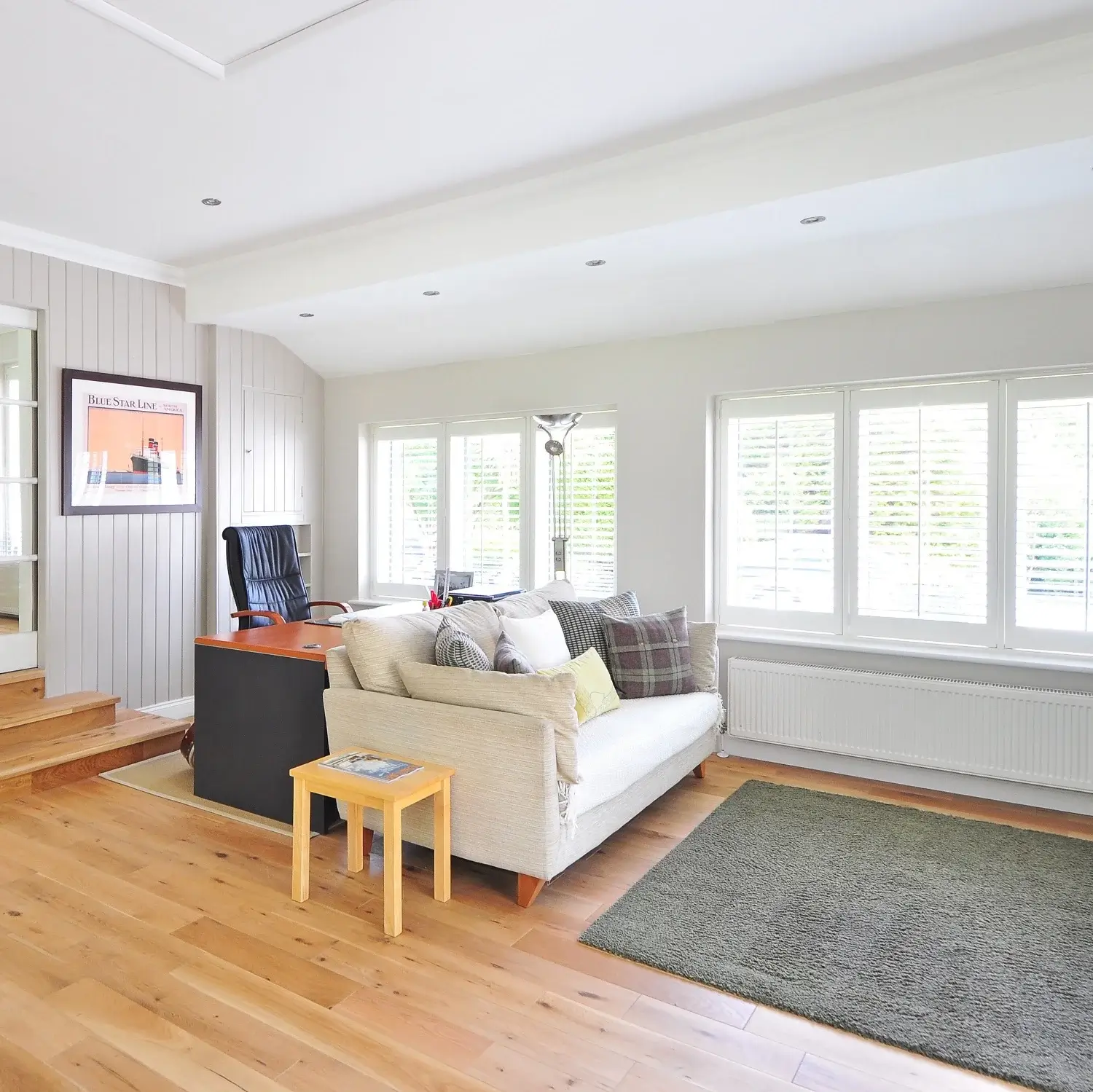 - Decoración: Agrega elementos decorativos como alfombras, cojines, cortinas y cuadros que reflejen tu personalidad y estilo. Los detalles hacen la diferencia en la decoración de una sala de estar.