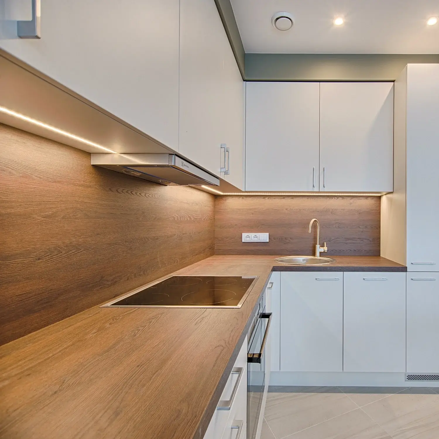 - Iluminación: La iluminación es esencial en cualquier cocina. Asegúrate de incluir suficiente luz natural y artificial para crear un ambiente cálido y agradable. También puedes considerar la incorporación de luces LED, que pueden ahorrar energía y crear un ambiente moderno.